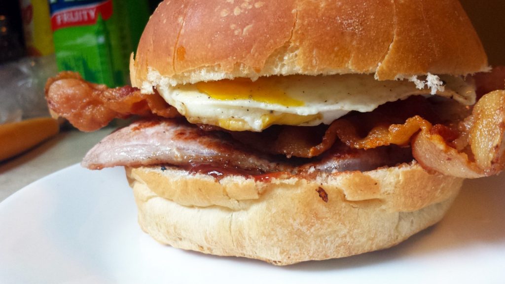 Dry-cured back bacon, sausage (or signature sausage + 1), black pudding, haggis, fried mushroom, free-range egg (poached, scrambled OR fried) and house-made sweet chill baked beans. Served with sourdough toast with salted butter tomato and mushroom